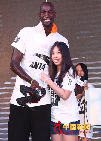 KG显然也没有想到会收到这样别致的礼物,拿在手里翻来覆去看着,还摆在自己脚边,幽默的做出了试穿高跟鞋的样子。同样是鞋子,KG收到高跟鞋,他自然也得将他的安踏KG IV代篮球鞋赠送给球迷,并在鞋面上亲笔签名。