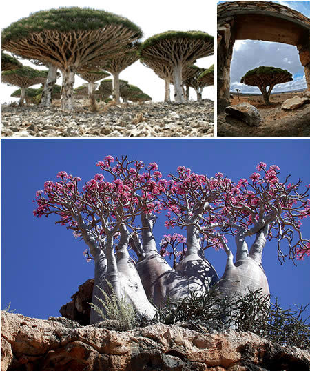 印度洋的索科特拉岛,来到这个岛屿上你会打破在地球上什么是“正常”的景观概念,你会像在梦境中一样,认为被运送到另一个星球或时光倒流回到地球的历史的某个时期。索科特拉岛由四个岛屿组成,从地理上来说,在过去的600或700万年间,它一直被非洲大陆孤立在外。这座小岛跟加拉帕哥斯群岛一样,上面生活着700多种极其罕见的动植物,其中三分之一在地球其他地方都看不到。恶劣的气候,炎热干燥,全沙滩引起充分的石灰岩高原的洞穴(约7公里长)和山区高达1525米高。但是-最惊人的繁荣有植物的生命,树木和植物的这个岛国保存地质通过长期孤立,其中一些品种大约已经有2000万年。