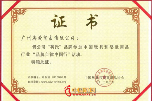 2013年初,英氏婴童用品应中国玩具与婴童用品协会邀请,加入“品牌自律中国行”活动,成为国内首批自律承诺品牌之一,据中国玩具和婴童用品协会公布数据,参与自律活动的首批自律承诺品牌名单,包括“英氏”品牌在内,涉及玩具、汽车儿童安全座椅和婴童用品等三大品类65家企业99个品牌。