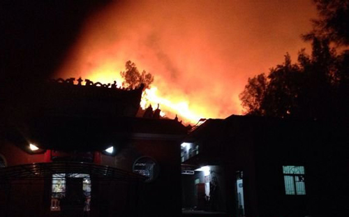 村民于女士说,12日晚上七八点,她和几位家人一起上山,在寺庙歇息后继续沿着小路上山顶,和其他人聚集在山顶的空地。大约在夜里11点左右,百米下的山腰突然起火,火迅速朝山顶蔓延:“我们都吓坏了,不少人赶紧用手机联系家人或报警。”