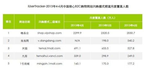 国内市场研究机构艾瑞日前发布2013年第二季度当当网企业研究报告。报告显示,当当网尾品汇自今年5月上线后,覆盖人数激增至540万人,已超过天猫闪购平台,仅次于唯品会,排名第二。不过,唯品会的领先优势仍然偏大。