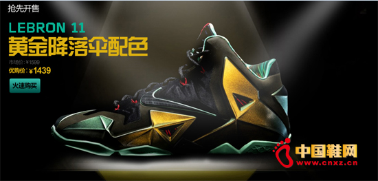 据了解,早在Nike 公司发布 Nike LeBron 11 全新配色之时,各路媒体便一路竞相追逐,其前卫动感的设计更是令广大球迷们赞叹惊呼。此次黄金降落伞配色限量首发,在1599元最新市场价的基础上,优购网特别推出限时8.5折——1359元,同时还加送袜子,活动价在仅3日之内有效。着实令网友喜出望外。该战靴一经上线,火爆场面不言而喻,掀起网友如火如荼的抢购之余,优购网更是收获颇多好评。