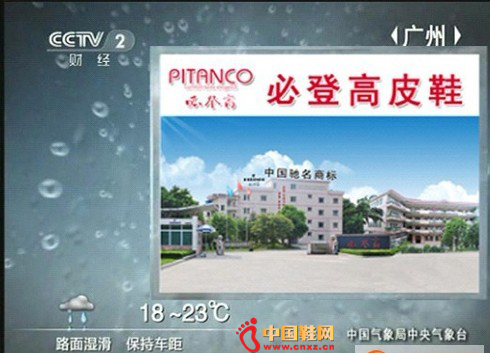 【中国鞋网-品牌动态】今年开始广东鞋业有限公司与CCTV-2财经频道《第一时间·第一印象》的天气预报景观广告签订了全面战略合作协议,2013年开始与中央电视台全面合作,投入巨资在CCTV-2财经和中国教育CETV-1两大主流高端频道《天气预报》栏目精彩绽放靓丽身姿。