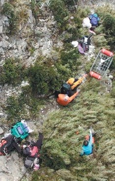 【中国鞋网-山难报告】台湾高雄一支八人登山队,18日在花莲奇莱山区卡罗楼断崖传出意外,56岁黄星池摔落200公尺(米)深的溪谷,军方派直升机救援,吊挂上机送医救治,没有生命危险,救难人员惊呼“实在命大!”