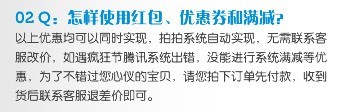 为了验证是否为系统出错,王先生继续拍下两单,同样是无法使用代金券、优惠券,而满减的说法则早已被客服一口否决。次日,经过与客服人员的进一步沟通,表示由于只有王先生一个客户遇到此类情况,并不承认系统出错的质疑,所以网店无法解决,而针对在产品页面中所出现的“如遇疯狂节腾讯系统出错,没能进行系统满减等优惠,可与联系客服退差价”的描述,客服也明确表示无法退还。
