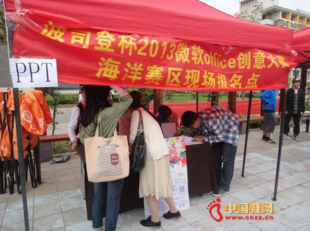 经过玩转PPT社所有成员一个多月的策划和筹备,本次大赛于10月15日在海洋大学海星广场正式拉开帷幕,线下宣传横幅、海报、单页等分别在海星广场现场咨询摊位、横幅悬挂专区、活动宣传栏、小区大厅、寝室门厅和各餐厅门口等启动全面宣传,线上同步在人人网、大赛论坛等网络进行持续宣传,活动得到校社团联合获得大力支持。