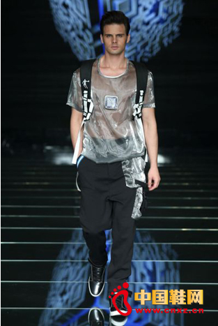 (轻盈银色面料加上二维码矩阵元素演绎未来时尚)