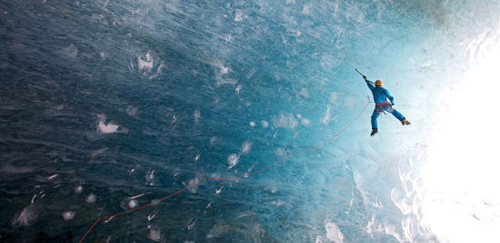 照片的主角是喜爱各种极限运动的攀冰者提姆•埃米特(Tim Emmett),拍摄地点选择了法国夏蒙尼波松冰河(Mer de Glace)的冰川洞穴里。美丽的波松冰河向人们展示了“冰与冷”的独特魅力。或是温柔,因为它让人们沉浸在迷人梦幻的“童话世界”;或是残酷,因为攀冰者正在进行一次“勇者无畏、惊险刺激”的严峻挑战。