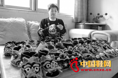 【中国鞋网-滚动快讯】11月5日,汤阴县城关镇南园村72岁的王玉花老人在缝制“虎头棉鞋”。