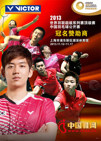 【中国鞋网-品牌动态】最新消息,VICTOR成为2013年世界羽联超级系列赛顶级赛中国羽毛球公开赛冠名赞助商。