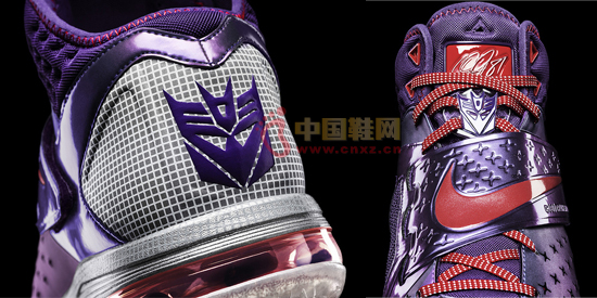 Nike CJ81 Megatron Trainer Max 使用了变形金刚狂派首领“威震天”大量的元素作为设计,包含了紫色配色、狂派图样,以及能够表现出机械、武装质感的材质设计。此外,这一个鞋款还将同捆一隻专为此联名製作、特殊造型的密卡登。中国鞋网-最权威最专业的鞋业资讯中心。合作媒体: