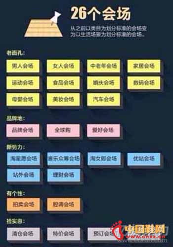 【中国鞋网-鞋业趋势】11月21日消息,据了解,淘宝网已经公布了1212大促六大玩法,和双十二划分的26个会场。