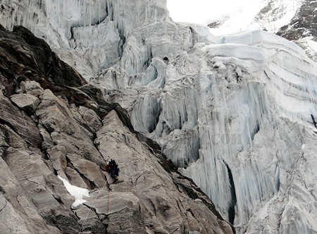 攀登线路高差1600米(从冰川开始攀登起),难度ED,40-60度。
