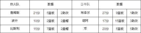 公牛此役尽显内线优势,布泽尔17中10砍27分9篮板,诺阿9中6拿到17分15篮板,替补登场的泰-吉布森12中8获得19分6篮板。公牛内线三人组篮下碾压打出高效率,牢牢控制篮板,痛击热火软肋。即便罗斯再度伤停,内线强大的公牛仍是热火在东部的主要威胁。