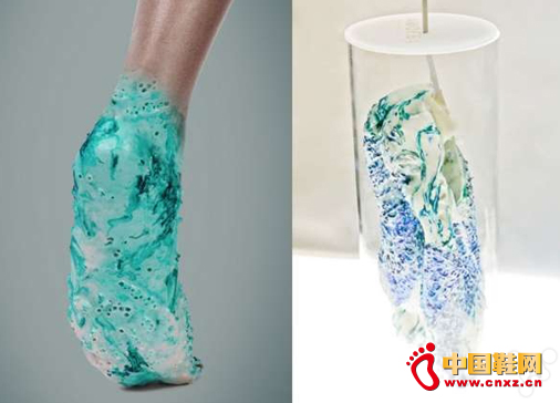 对于这款新型原始细胞跑鞋,Dezeen 向我们解释道:“这些细胞在应对压力时具备充气和放气的能力,当用户在不同材质和硬度的地面上运动时,它能根据用户脚部所施加的压力自行膨胀或缩小,以达到最合理的足部运力原理,助运动者一臂之力。在运行结束后,材料中的原生细胞会失去它们的能量,用户应将跑鞋放在一个填充原生细胞液的广口瓶中,使生物体恢复健康活力。这些原生细胞液可以染成任何颜色,当细胞自愈时,便可随之上色。用户可以将跑鞋放在家里保存,并且要像照顾植物一样,每天确保给它提供恢复细胞活力所需的自然资源。”(中国鞋网-最权威最专业的鞋业资讯中心。合作媒体: )
