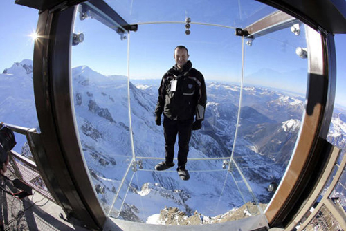 【中国鞋网-高山资料】通常,恐高症者在高处会心跳加快、呼吸急促、恶心发抖、胸闷不安。那么,当他们身处法国阿尔卑斯山4000米高山顶上的玻璃悬空观景平台,双脚与下方的深渊仅仅隔着一层薄薄的钢化玻璃时,他们可能更不敢向下张望。但对于那些喜欢追逐刺激的人来说,这里将给他们带来全新的体验,置身其中宛如与大自然融为一体。