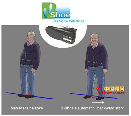 当正常人站不稳的时候往往会单脚往后进行固定,这就是“backward step”,而B-Shoe智能鞋就是依靠这个原理来帮助老年人保持平衡。B-Shoe的鞋底安装了鞋垫压力传感器、驱动单元、可充电电池和微处理器,并通过专有的智能算法来确定是否需要进行调整。(中国鞋网-最权威最专业的鞋业资讯中心。合作媒体: )