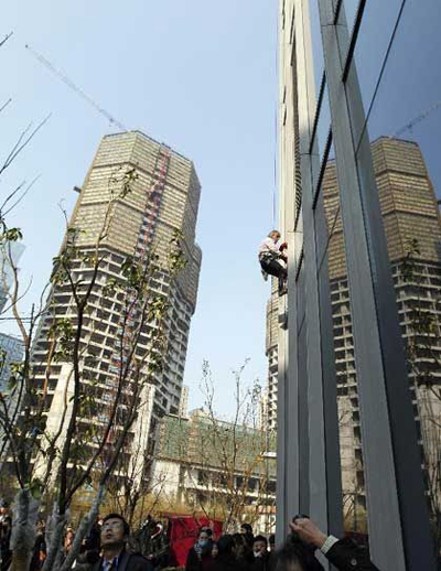 法国蜘蛛人徒手攀爬绍兴世茂天际中心