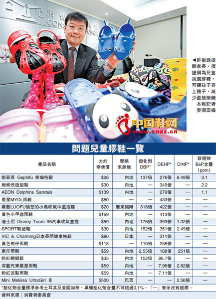 ¡¡¡¡Ïûί»á×òÈÕ¹«²¼£¬Ôçǰ³éÑé28¿î¶ùͯÇá±ãЬ¡¢¼Ò¾ÓÍÏЬ¼°ÓêÑ¥µÈ½ºÐ¬£¬»¯Ñé²âÊÔÆä»¯Ñ§ÎïÖʺ¬Á¿¡£ÓÉÓÚ¹ú¼Ê¼äÔÝʱ½öÍÁ¶úÆä¼°ÃÀ¹ú¼ÓÖݶÔЬÂÄËÜ»¯¼Áº¬Á¿ÓÐËù¹æ¶¨£¬ÉÏÏÞΪ0.1%£¬Ïûί»á²Î¿¼¸Ã±ê×¼·¢ÏÖ£¬ÆäÖÐ15¿î½ºÐ¬µÄ»¯Ñ§ÎïÖʺ¬Á¿³¬±ê£¬²¿·Ö³¬±ê·ù¶È¾ªÈË£¬µ±Ö㬱ê×îÑÏÖØµÄÊÇÒ»¿îûÓбêÃ÷À´Ô´µØµÄ¡°MYDL Rain Boots¡±ÓêÑ¥£¬ËÜ»¯¼ÁDEHPº¬Á¿³¬±ê433±¶£¬Á½¿îÖйú²úµÄ¡°ÂÞ·ó·ßŵÄСÄñ´µÆøÖÐͯÍÏЬ¡±¼°¡°»ÆÉ«Ð¡¼×³æÓêÑ¥¡±£¬DEHPº¬Á¿¾ù³¬±êÓâ400±¶£¬¶øÒ»¿îÉù³Æ²ú×ÔÈÕ±¾µÄ¡°VIC &CharmingÈÕ±¾³¤Ã÷½¡¿µÍÏЬ¡±£¬¼°Ò»¿îÖйúÑuµÄ¡°ÍÏDisney Team95Æû³µ´µÆøÍ¯ÍÏ¡±£¬Ò೬±ê300¶à±¶¡£