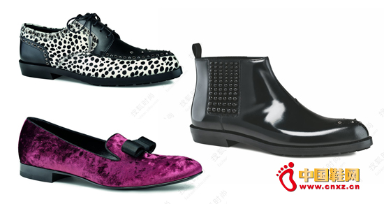 其次,极具特色的尺寸与鞋底展现出叛逆的哥特摇滚风格。鞋子的材质采用闪亮的擦色皮革,或更古怪的斑点状马毛。经典的男士鞋配有银色镶边以及金属嵌钉和饰孔,而拉链机车鞋则包括“Beatle”及搭扣鞋款。