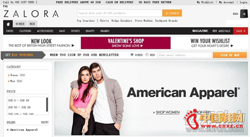 【中国鞋网-电商频道】2月8日消息,东南亚时尚电商Zalora为了满足顾客越来越国际化的购物需求,目前在Zalora新加坡站推出了美国American Apparel。