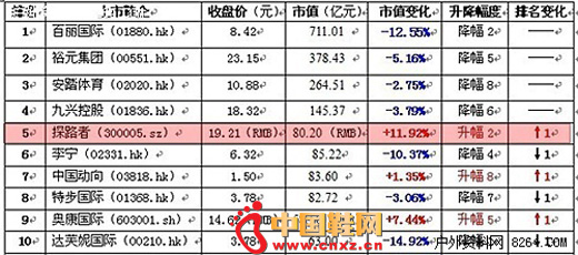 今年一月份以来,市场持续看好户外板块,对比已经上市的品牌鞋企股价,涨跌各半,但探路者始终保持大涨的势头,市值排名亦上升到品牌鞋企类股价第五位。