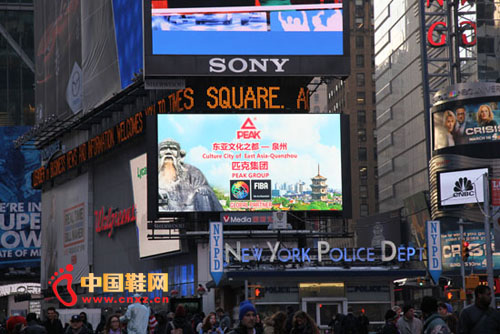 【中国鞋网-品牌观察】美国时间2月14日,一组极具文化色彩的宣传片登陆纽约时代广场,方块字“文化之都——泉州”映入游客眼帘,泉州地标“老君岩”、“东西塔”不断闪现在“世界十字路口”,马可-波罗口中的“世界第一大港”——泉州再次走进国际视野。城市与品牌共同推广亮相,这一新颖创意的幕后推手董事长许景南表示:“企业与城市、与国家的发展密不可分,匹克品牌作为泉州文化的一部分,匹克文化已经与泉州文化融为一体。向世界传递企业、城市的共同的中国梦,是匹克义不容辞的责任。”
