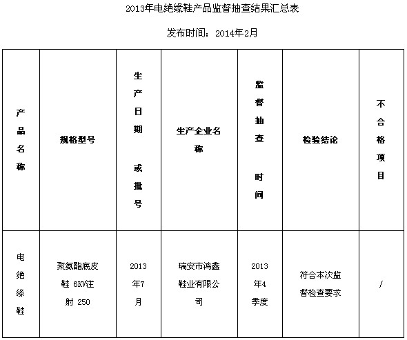 浙江质监公布2013年电绝缘鞋产品专项监督抽查结果