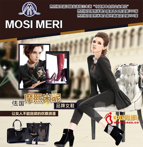 摩熙米昵女鞋品牌不仅是女性群体的扮靓利器,更是合作伙伴的赚钱帮手,品牌实力毋庸置疑,期待有志之士互利共赢!(中国鞋网-最权威最专业的鞋业资讯中心。合作媒体: )