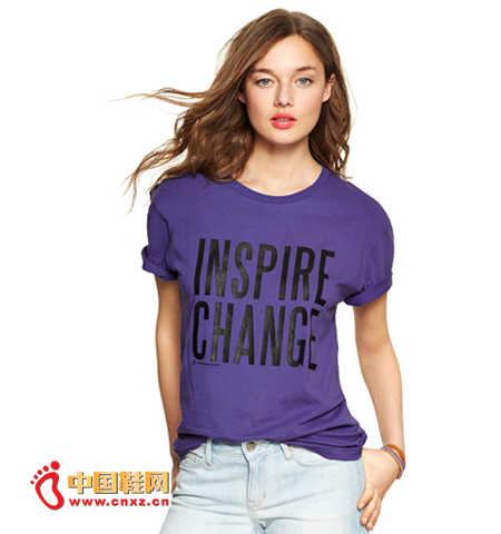 关于该项目,Gap还设计了一款紫色(妇女节代表色)限定版T恤,印有电影中的主旨句,也是诗人Azure Antoinette的诗句:迎头改变,开启女性智慧的不二法门(The way to inspire change, is to recognize the wisdom of a woman)。中国鞋网-最权威最专业的鞋业资讯中心。合作媒体: