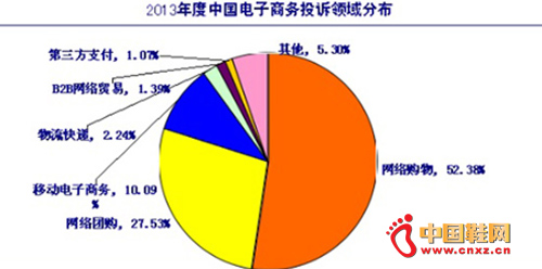 监测数据显示,2013年电商价格战、“双11”、电商周年庆,均是用户投诉高峰期。在各电商领域中,网购投诉占52.38%,团购投诉占27.53%,移动电商投诉占10.09%,物流快递投诉占2.24%,B2B投诉占1.39%,第三方支付投诉占1.07%,其他领域投诉占5.30%。