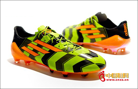 阿迪达斯创新团队开发出了全新革命性的新一代轻质鞋面技术。这种技术不但大幅减少了球鞋鞋面重量,同时依然保持着球鞋的优异品质与性能。时尚的黑色和绿色箭头设计展现出前进的动感,箭头尾部则为亮橙色的阿迪达斯三条纹。