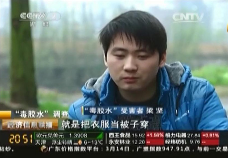 该节目以一位毒胶水中毒者的艰难维权之路,展现了由于使用毒鞋胶导致苯中毒的职业病患者生存现状、制鞋小作坊恶劣的生产环境;而一些小型胶水生产企业为了利润,大量生产有毒劣质胶水,部分店铺暗中出售……在利益面前,毒胶水屡屡禁而不绝,依然危害着广大制鞋企业工人的身体健康。