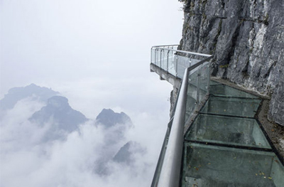 它之所以被称之为悬崖步道,是因为它紧贴这悬崖。然而,您的脚根本不会接触到悬崖壁。取而代之的是,一条距海平面4000英尺(约1200米)、3英尺(约0.9米)宽2.5英寸(约6厘米)厚的玻璃步道来挑战您的承受极限。尽量不要往下看,这样您就不会感到害怕,但同时您也错过了湖南省的风光全景。