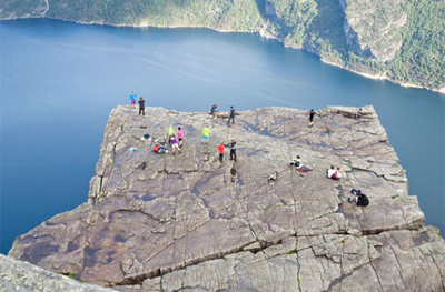 布道山上没有安全栏杆或者屏障,想要离悬崖边多近完全由旅客决定。被称为布道台的这块悬崖,是一个82*82英尺(约合625平方米)宽的平面悬挂在距里瑟峡湾2000英尺(约609米)处。尽管这块峭壁的顶端是平的,但是攀登到顶困难,往往需要1-3小时。