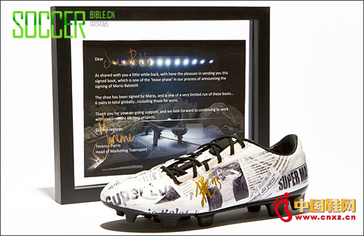 【中国鞋网-品牌动态】去年12月,彪马宣布他们成功签下了马里奥·巴洛特利。他们当时是打败了诸多竞争对手才拿下这位国际足坛最有个性的球员之一的。彪马让这位米兰射手在比赛中穿上一双印满他本人的报纸头条的定制版全新evoPOWER,并用这样的方式向世人宣告了这笔新签约。