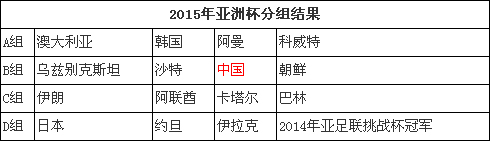 亚洲杯抽签中国遇朝鲜沙特乌兹别克 澳洲韩国同组