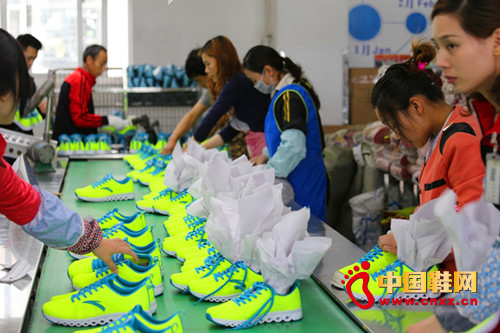 走进安踏的制鞋车间,一双双外观时尚的运动鞋随着繁忙流水线 的运转逐渐成形,“安踏”商标被巧妙而又醒目的设计在产品上。