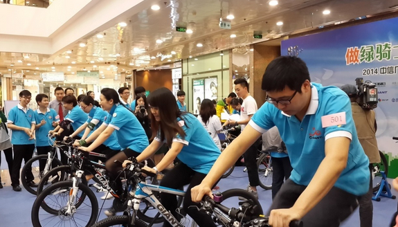 【中国鞋网-展会新闻】2014年3月27、28日,由环保骑行组织拜客广州主办的2014中信广场“地球一小时”环保活动在中信广场中天购物城中庭顺利举行。广东自行车展积极响应“地球一小时”全球环保活动,应主办方邀请,来到了活动现场与各位市民互动。在活动现场,广东自行车展组委会对即将在8月15-17日在中国进出口商品交易会展馆(广交会展馆)举行的中国(广东)自行车展进行了详细的介绍,并向广大市民发起了参观邀请。另外还通过“微信扫一扫”活动,来倡导环保低碳生活唤醒大家的环保意识,并吸引了数百名市民拿出了手机响应了本次活动,同时广东自行车展也为身体力行支持环保的市民们派发了数百份户外装备。