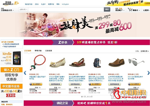 【中国鞋网-电商频道】亚马逊昨日宣布拉开其在华十周年线上狂欢盛典系列活动的序幕。自2004年收购卓越至今,亚马逊在中国已步入第十个年头,亚马逊决定以优质商品和低价为噱头,展开入华以来最大力度和规模的系列庆祝活动。