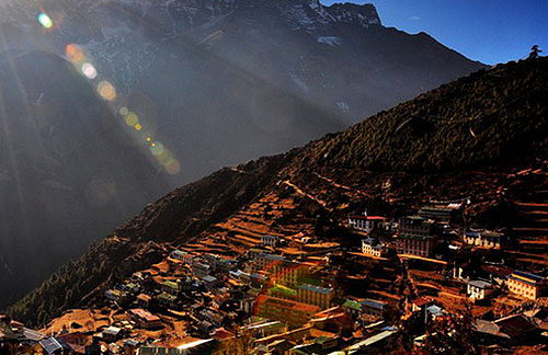 【中国鞋网-登山新闻】“2014年中国首次女子民间珠峰(南坡)登山队”全体成员从加德满都乘坐直升机抵达卢卡拉,并在徒步两个小时后,抵达海拔2600米的小城帕克丁。