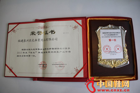 【中国鞋网-品牌动态】匹克再次捍卫了自己作为国内篮球市场“王者”的地位。4月16日,由中国商业联合会、中华全国商业信息中心最新公布的《全国大型零售企业级消费品市场2013年度监测报告》中,匹克篮球鞋以9.84%的市场综合占有率位列同行业第一,自2008年至2013年连续第6年蝉联此殊荣,并因此被中国商业联合会授予“冠军品牌”荣誉称号。