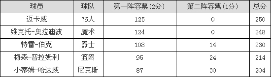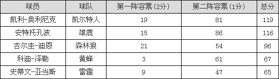 新秀最佳阵容:迈卡威一阵 字母哥雷霆悍将入二阵