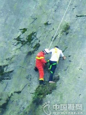 【中国鞋网-山难报告】昨日中午,一个小伙子和朋友打赌后,攀爬位于贵阳市沙冲南路附近一处高近五十米的陡崖,却被困在离地约三十米高的山腰处上下不得。一个小时后,消防官兵赶来将其救下。