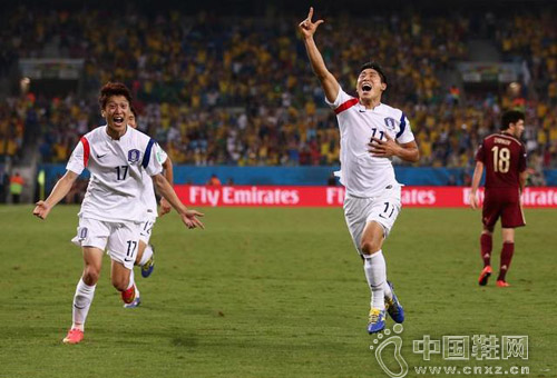 【中国鞋网-赛事追踪】北京时间6月18日上午,2014年巴西世界杯H组首轮,俄罗斯和韩国在库亚巴的潘塔纳尔竞技场1比1战平。第68分钟,李根镐为韩国破门。第74分钟,克尔扎科夫扳平比分。