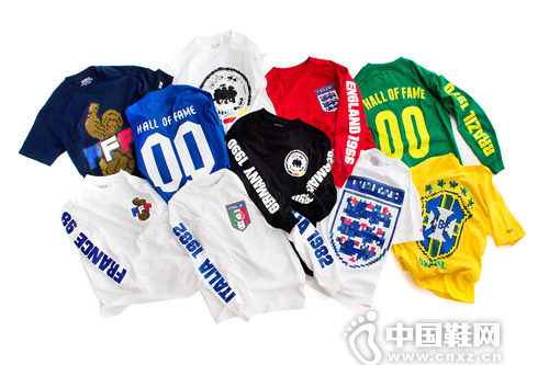 【中国鞋网-时新装备】顺应著世界杯所掀起的足球狂热,美国街头品牌 Hall of Fame 日前亦都发表了 2014 世界杯主题系列,推出一系列以不同国家球队为题材而设计的 T-Shirt 和卫衣,去响应势不可挡的足球热潮。而该系列在线上推出之后更旋即被抢购一空,但有兴趣的朋友依然可以尝试在品牌的指定零售商碰碰运气。至于创意单位 a number of names* 就特别为该系列制作了一部视频让大家观看。(合作媒体:)