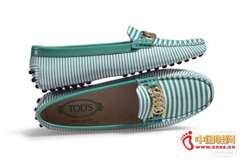 【中国鞋网-品牌动态】标志性的TODS豆豆鞋推出2014夏季限量版新款。该全新鞋款柔软、轻巧又充满趣味,其采用漆皮材质打造,饰以明亮的红白、蓝白或蓝绿色配白色条纹。该鞋款还拥有金色链条细节,此外,其内鞋底凸显有与众不同的小细节,使其配色洋溢着TODS最爱的地中海度假风情。因此,蓝白条纹款为“Porto Cervo限量版”,红白条纹款为“St. Tropez限量版”,而蓝绿色配白色条纹款则名为“Capri限量款”。