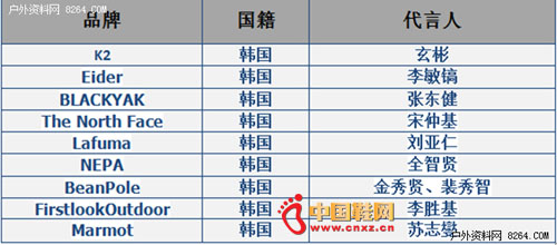 一,国际户外品牌对韩国明星代言更加偏爱。