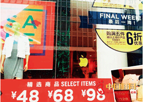 GAP的库存折扣也会同时配合店内的一些当季折扣商品,新旧搭配,避免让顾客觉得好像全是一些过时的服装,再加上鞋包、内衣、配饰,每件货品的吊牌上都贴有鲜艳的打折价标签刺激顾客的购买欲。虽然客单价提高,但顾客仍然觉得占到了便宜。