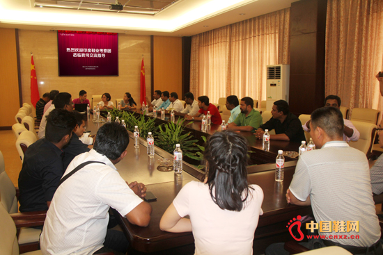 在参观了印心鸟样品展示厅和生产流水线后,双方举行了座谈,就公司市场状况、原材料的采购来源、企业招工、用工成本等情况进行了了解;蓝晓育代表印心鸟公司向考察团一行的到来表示热烈欢迎,并对考察团提出的问题做了详尽回答。考察团对印心鸟所生产的精美鞋子赞不绝口,在得知印心鸟品牌尚未进入印度市场销售时,有客商提出做印度总经销的想法,将印心鸟品牌引入印度市场。